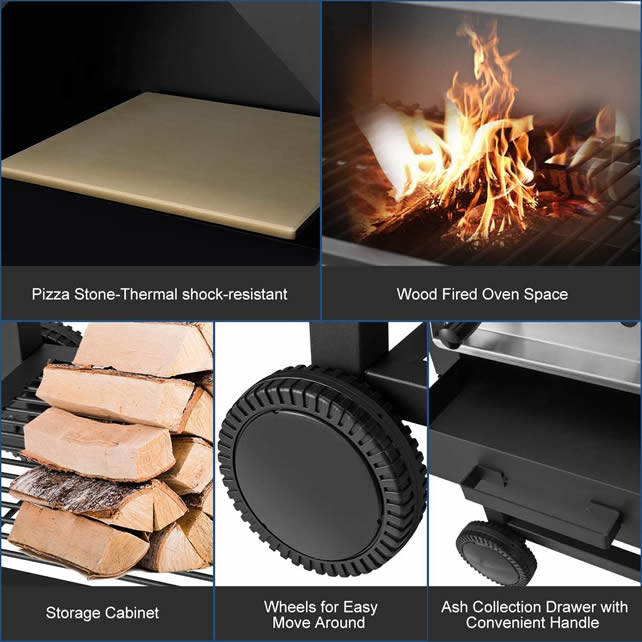 Designed primarily for cooking pizzas, grilling & barbecuing food but can also be used for smoking or even as a heater to keep you warm during the long summer evenings. Includes free Pizza stone (suitable for pizzas up to 12".