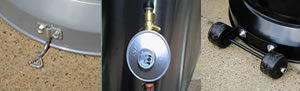 Free cover for winter protection, Free wheel set to easily move it around your patio, Free ground anchor set to securely fix it to the ground for added security, Free automatic tilt cut off switch, Free gas hose and Free gas regulator. Just add a propane / Butane gas bottle from your local store.